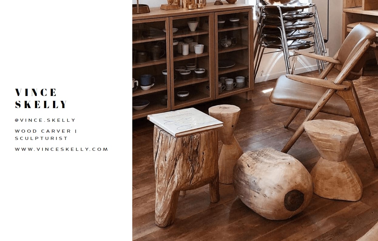 Wielding a chainsaw using the subtractive-sculpting process, Vince Skelly’s primitive style comes straight from his hands and a single wood block. Turned into something seriously exquisite these pieces are one-of-a-kind and truly transformative.