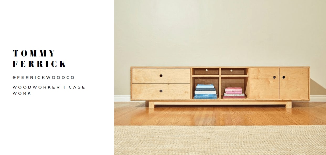 Custom woodwork, custom casework, there's nothing Tommy Ferrick can’t do. Specializing in all things wood - Ferrick is one of that jack-of-all-trades kind of craftsmen. His work varies in style and types of wood and if it’s not custom-designed furniture and spaces he’s building, he sells custom cutting boards and all of it is one of a kind and beautiful.